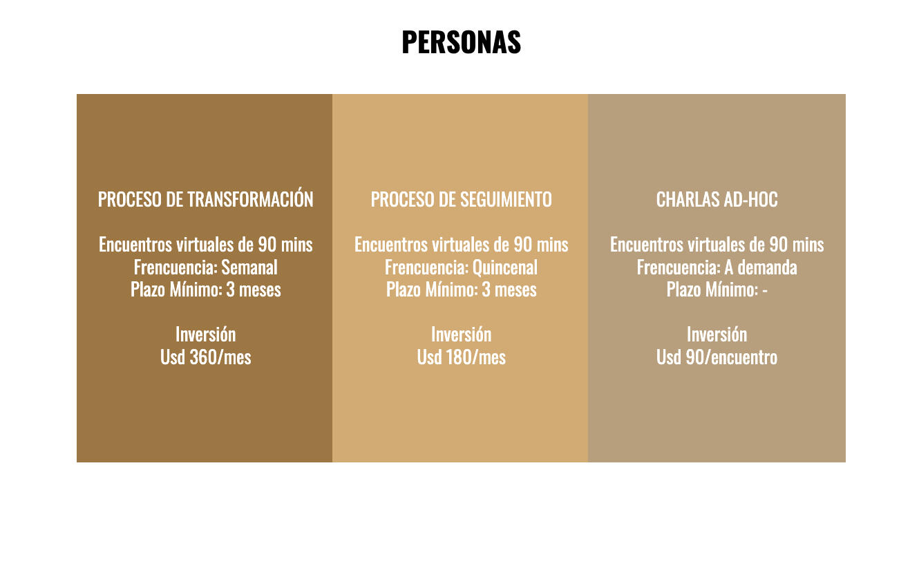 Acompañamiento personalizado para alinear Visión, Misión, Estrategia y Gestión Personal.Liderazgo efectivo a través de Inteligencia Emocional y desarrollo de Habilidades Blandas.